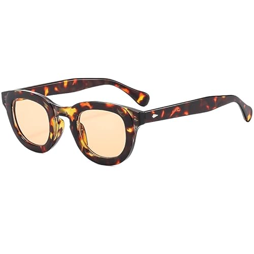 LJCZKA Lunettes de Soleil Ronde Rétro pour Femmes Hommes,Ovale Lunettes de Soleil Petit Années 90 Vintage Ronde Lunette Mode Protection UV400 pour Conduite en Plein Air (LéopardOrange)