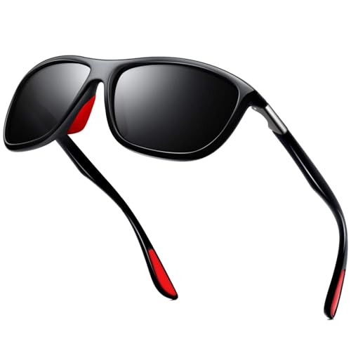 KANASTAL Lunettes de Soleil Homme Polarisées Lunette de Soleil Sport Femme Rectangulaire UV400 pour Cyclisme Pêche Alpinisme Randonnée Golf Noir Rouge