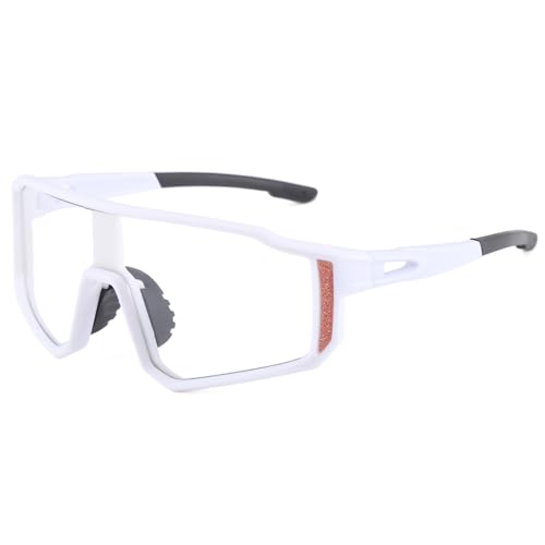 SCVCN Photochromique Lunette de Cyclisme Sport Homme Femme Transparente UV400 TR90 Vélo VTT Pêche Course Conduite Pêche Volleyball Golf Softball 04 Blanc