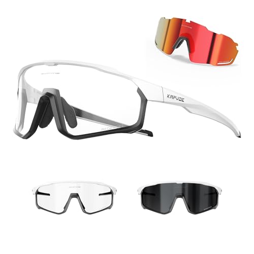 KAPVOE Lunette de Cyclisme Photochromique Homme Lunette Vélo Route TR90 Cadre Lunette VTT Femme Transparente Lunette Cycliste Anti-UV400 Lunette de Soleil Sport Pour Running Course Conduite K335