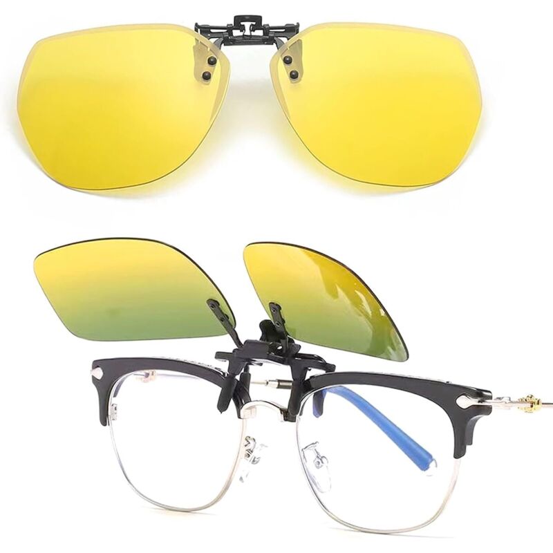 Clip Lunettes Conduite De Nuit Polarisées - Réduisez L'Éblouissement Et Le Stress Visuel - Lunette De Vision Nocturne A Clip,Verres Jaunes HD - Accessoire Essentiel Pour Conducteurs