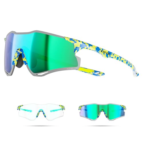 KAPVOE Lunettes Velo Photochromique Lunette de Soleil Sport Cyclisme Homme Femmes Route VTT Running Course a Pied Base-ball Golf Football K425