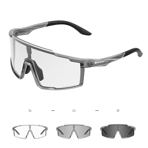 Cyberwork Lunette de Cyclisme Photochromique Homme Femme Garçons Filles, Rave Lunettes de soleil rapides pour homme et femme, Coupe-vent,UV400, Pour cyclisme, course, baseball, golf, alpinisme (gris)