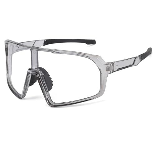 Long Keeper Lunettes Cyclisme Photochromique pour Hommes Femmes Lunette de Soleil Coupe Vent Transparente Sport Pour Vélo Pêche Conduite UV400 (Gris Clair)