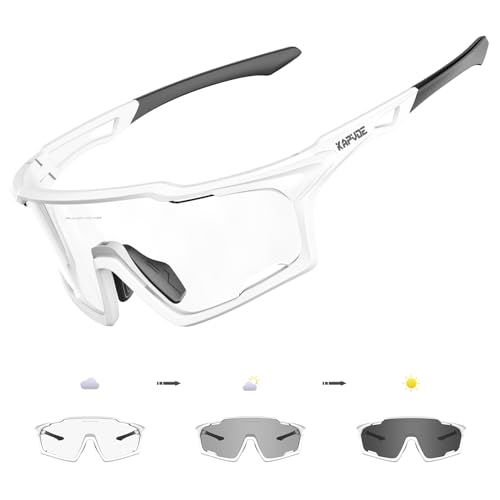 KAPVOE Lunette De Cyclisme Photochromique Homme Lunette VTT Lunette Velo Femme Lunettes de Soleil Velo Lunette Course à Pied Lunette Velo Route Lunettes de Soleil VTT Lunette de Soleil Sport Blanc