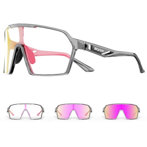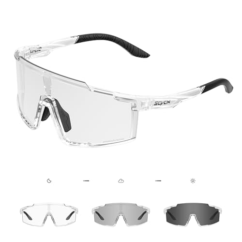 SCVCN Lunettes Velo Photochromique Homme Femmes Cyclisme VTT Cycliste Sports Course a Pied Baseball Golf - S327