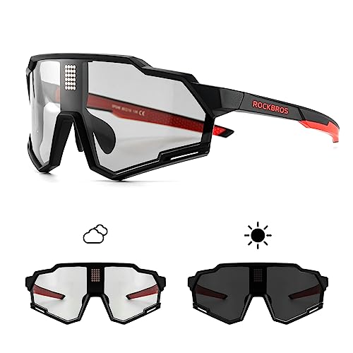 ROCKBROS Lunettes Vélo Route VTT Photochromique Hommes, Cyclisme Lunettes Soleil Sport VTT Pêche Running Noir Rouge pour Hommes Femmes