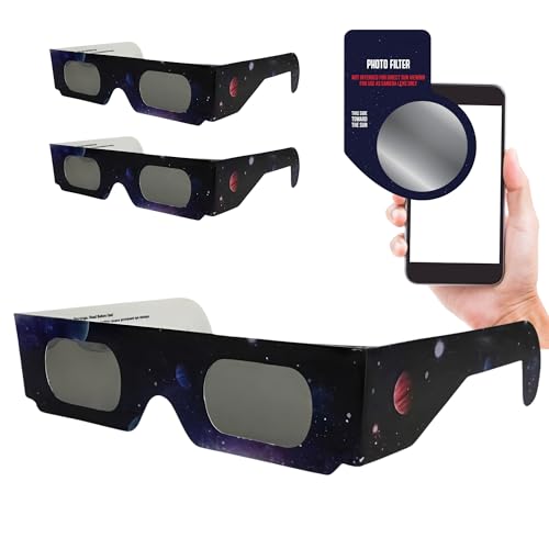 Kesseph Lot de 2 paires de lunettes anti-éclipse solaire approuvées 2026, certifiées CE et ISO, lunettes de protection sûres pour la visualisation directe du soleil, lentille filtre photo pour