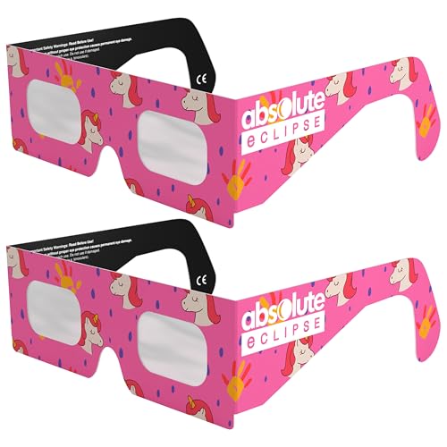 Absolute Eclipse Lunettes à éclipse solaire Unicorns - Testé ISO 12312-2 et certifié CE - Fabricant européen - Lot de 2 paires - Eclipse Europe 2026