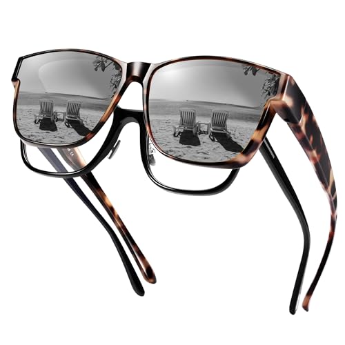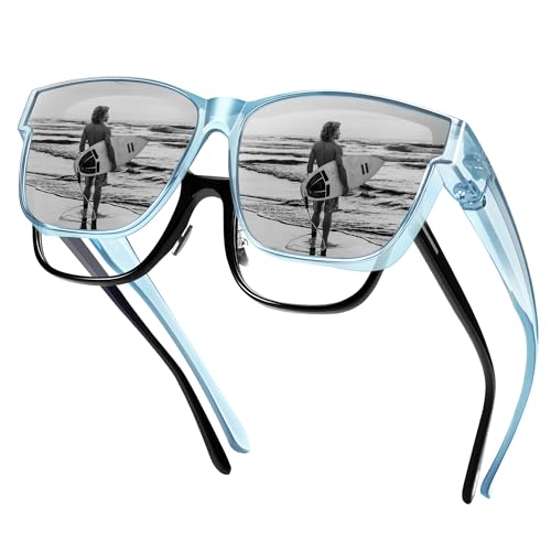 UILYNIU 2 Paires Surlunettes de Soleil Polarisées Homme Femme Sur-lunettes polarisantes pour Porteurs de Lunettes, UV400 Lunettes de Soleil Tendance Carrées pour la Conduite