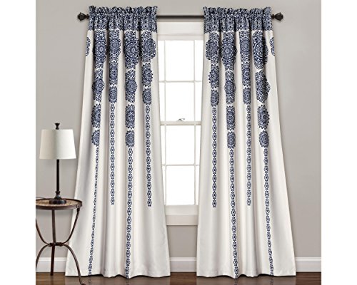 Lush Decor Paire de Rideaux de fenêtre filtrant la lumière, Motif Cachemire Floral, 132,1 cm de Large x 213,4 cm de Long, Bleu