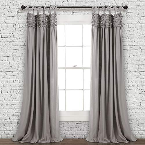 Lush Decor Lot de 1 Rideau de fenêtre à Volants pour Salon, Salle à Manger, Chambre à Coucher (Paire), Polyester, Gris, 101,6 cm de Large x 213,4 cm de Long