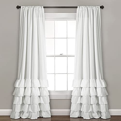 Lush Decor Allison Lot de 1 Rideau à Volants en Polyester pour Salon, Salle à Manger, Chambre à Coucher (Paire), 213,4 x 101,6 cm, Blanc, 101,6 x 213,4 cm (l x L)