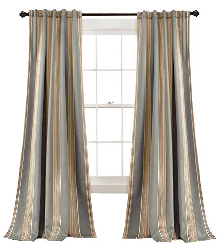 Lush Decor Julia Rideaux à Rayures | Ensemble de Panneaux de fenêtre rayés filtrant la lumière pour Salon, Salle à Manger, Chambre à Coucher (Paire), 213,4 x 132,1 cm, Gris
