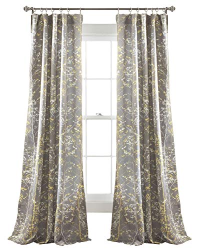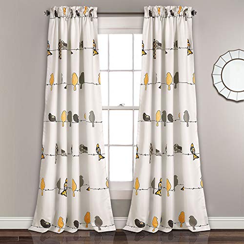 Lush Decor Rowley Paire de Rideaux de fenêtre filtrant la lumière avec Oiseaux - 132,1 cm de Large x 213,4 cm de Long - Jaune et Gris - Imprimé Floral coloré - Rideaux Fantaisie et ludiques pour
