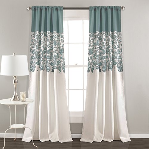 Lush Decor Clara Rideaux en Polyester, Bleu et Vert, 45,7 cm de Large x 132,1 cm de Long (Lot de 1)