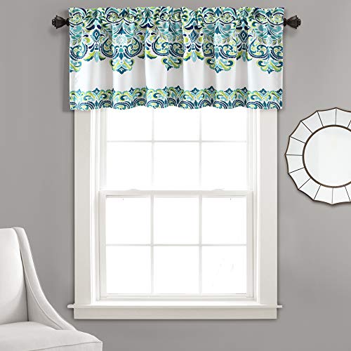 Lush Decor Clara Cantonnière Rideau Simple imprimé damassé Style bohème Turquoise et Mandarine 45,7 x 132,1 cm