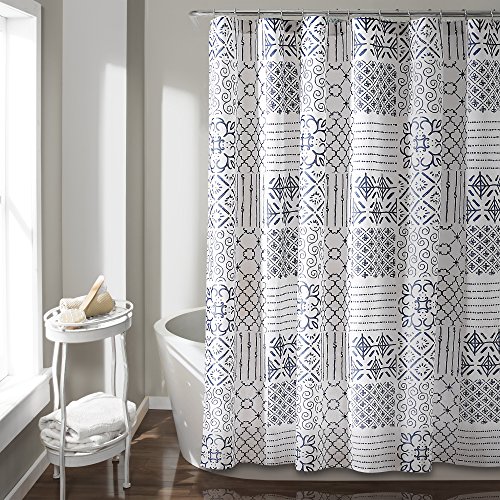 Lush Decor Blue Shower Curtain 1 Rideau de Douche Monique, Polyester, Bleu, W 72" x L 72" (1 Panels)