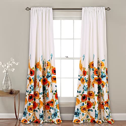 Lush Decor Percy Bloom 16T002249 Paire de Rideaux de fenêtre 213,4 x 132,1 cm Mandarine et Bleu