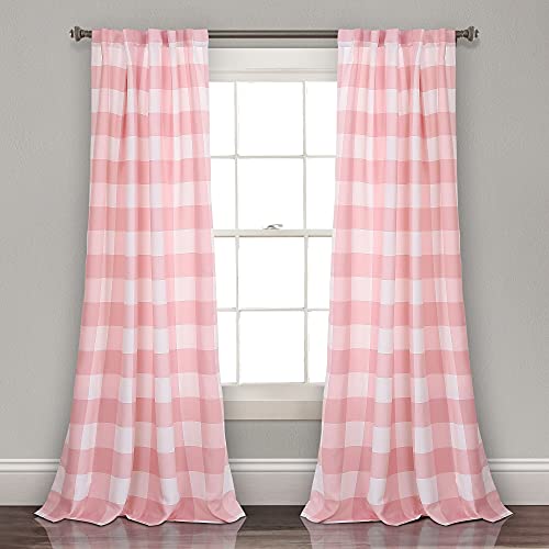 Lush Decor Rideaux à Rayures éléphant filtrant la lumière pour Salon, Salle à Manger, Chambre à Coucher (Paire), 132,1 x 213,4 cm (l x L), Turquoise et Rose