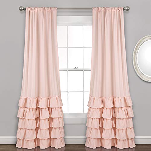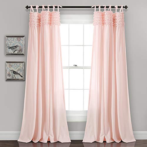 Lush Decor Lot de 1 Rideau de fenêtre à Volants pour Salon, Salle à Manger, Chambre à Coucher (Paire), Polyester, Rose pâle, 101,6 cm de Large x 213,4 cm de Long
