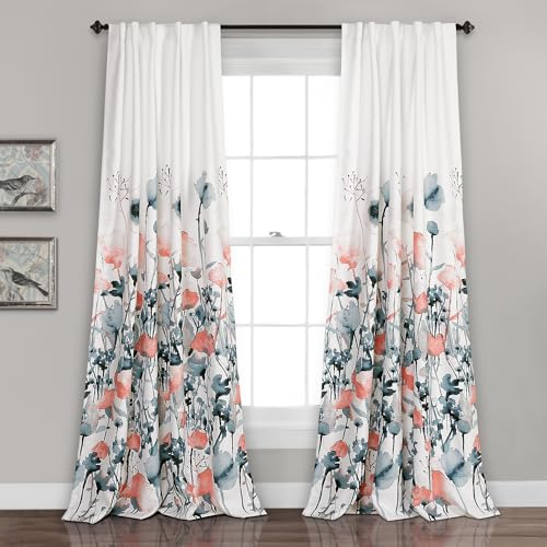 Lush Decor Zuri Flora Lot de 2 Rideaux occultants pour fenêtre de Salon, Salle à Manger, Chambre à Coucher (Paire), 213,4 x 132,1 cm, Bleu et Corail