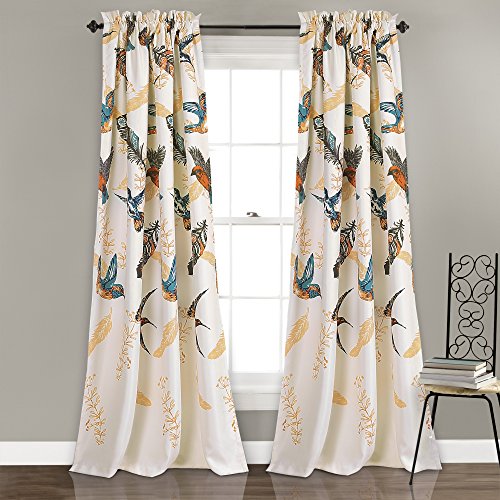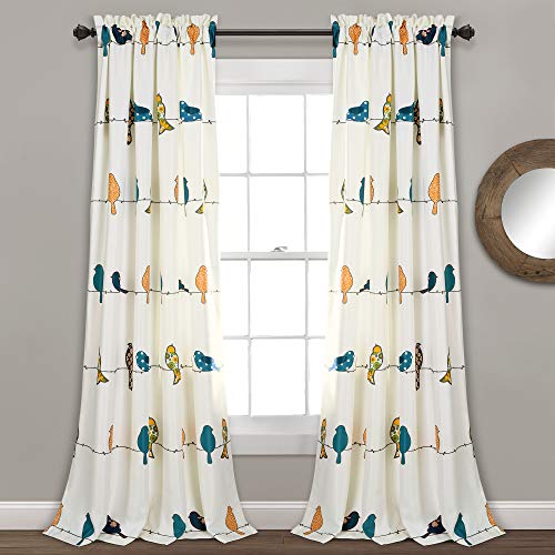 Lush Decor Paire de Rideaux de fenêtre filtrant la lumière, imprimé Floral Multicolore, Rideaux pour Chambre à Coucher, Salon ou Salle à Manger, Oiseaux colorés, 132,1 cm de Large x 213,4 cm de Long
