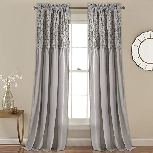 Lush Decor Edward – Lot de Rideaux en Treillis filtrant la lumière pour Salon, Salle à Manger, Chambre à Coucher (Paire), Gris, 132,1 cm de Large x 274,3 cm de Long