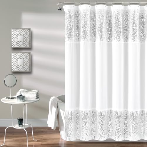 Lush Decor 1 Rideau de Douche à Paillettes Scintillantes | Design Scintillant Chic pour Salle de Bain, 177,8 x 182,9 cm, Argent et Blanc, 177,8 x 182,9 cm