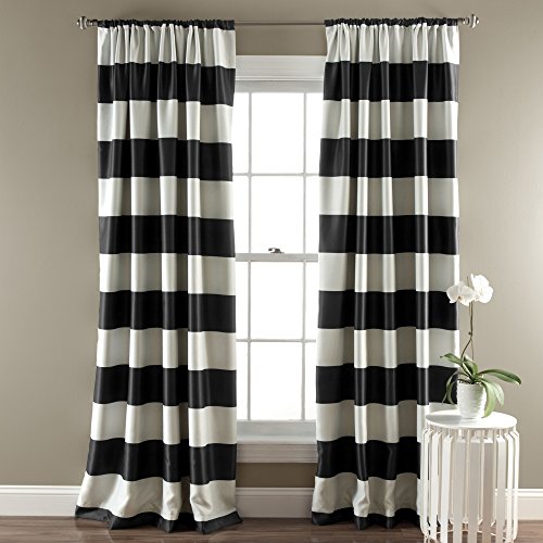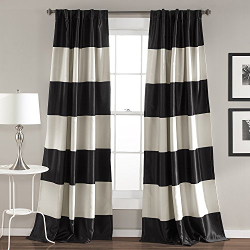 Lush Decor, Paire de Rideaux occultants à Rayures Noires de 213,4 x 132,1 cm, filtrant la lumière