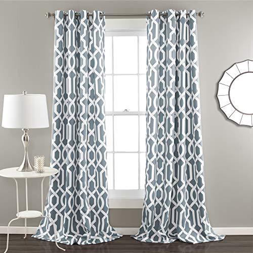 Lush Decor Ensemble de Rideaux occultants imprimés de Jardin pour Salon, Salle à Manger, Chambre à Coucher (Paire), 213,4 x 132,1 cm, Bleu