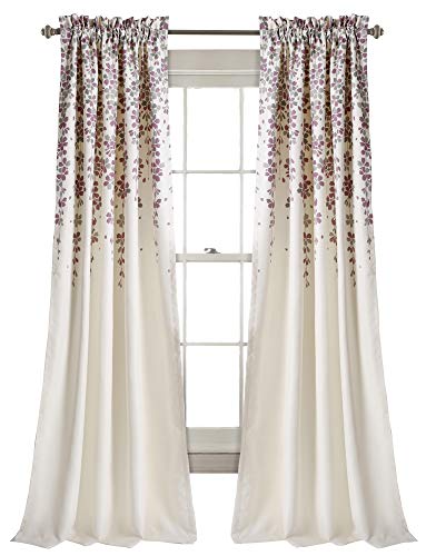 Lush Decor Leah Paire de Rideaux de fenêtre filtrant la lumière - 132,1 cm de Large x 213,4 cm de Long - Bleu - Motif Floral - Fleurs colorées à l'aquarelle du Printemps - pour Chambre à Coucher,