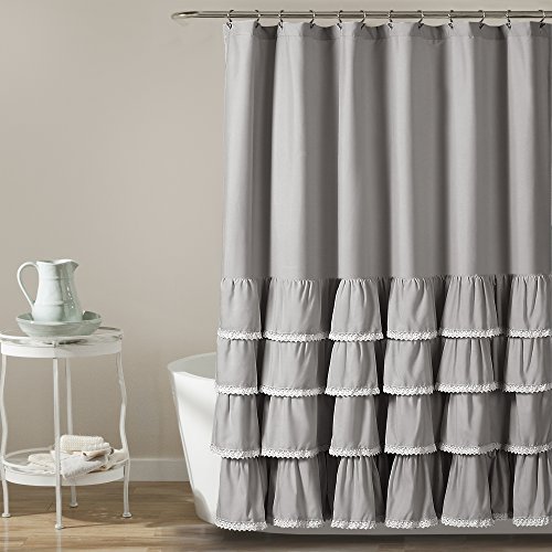 Lush Decor Ella Lace Ruffle Rideau de Douche, Polyester, Gris, W 72" x L 72" (1 Panels)