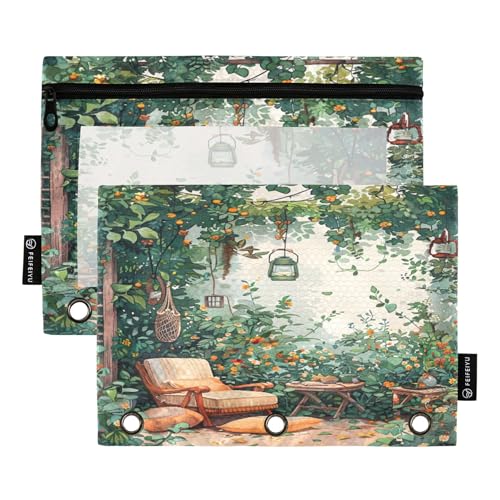 Sevdomey Lot de 2 Trousses à Crayons Vintage Lush Greenery à 3 Anneaux avec fenêtre Transparente, Lot de 2 Pochettes à Fermeture éclair pour Bureau, Verdure luxuriante Vintage, 7.08 * 9.84 inch,