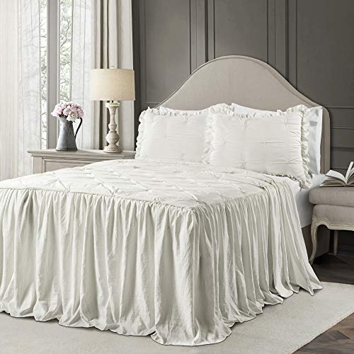 Lush Décor Ravello Pintuck Ruffle Skirt Bedspread White Shabby Chic Farmhouse Style Lightweight 3 pièces