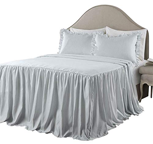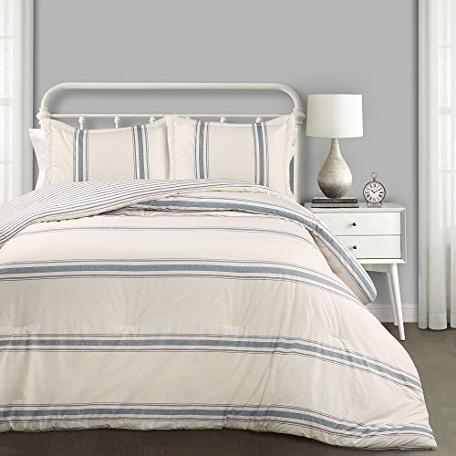 Lush Decor Parure de lit 3 pièces légère à Rayures en coutil Bleu lac Style Rustique Shabby Chic pour très Grand lit