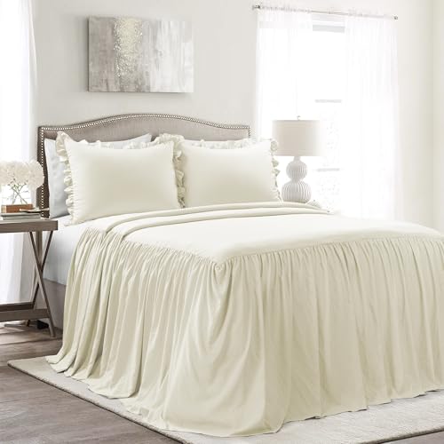Lush Decor Parure de lit 3 pièces avec Jupe à Volants pour Grand lit, Ivoire – Literie crème – Couvre-lit à Volants – Décor Rustique Vintage