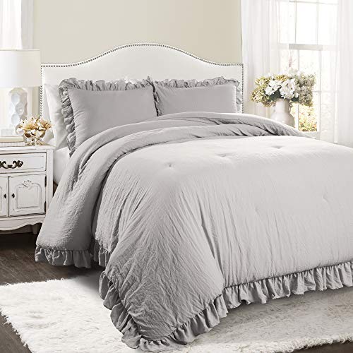 Lush Decor Reyna Parure de lit 3 pièces à Volants avec taies d'oreiller, lit Double/Grand lit, Gris Clair