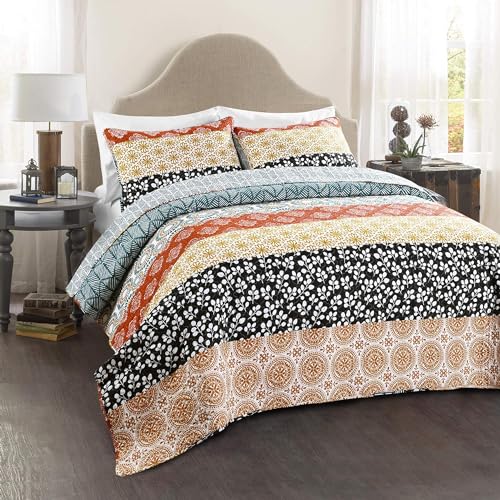 Lush Decor Boho Stripe 3-Piece Quilt Set, King, Turquoise/Tangerine