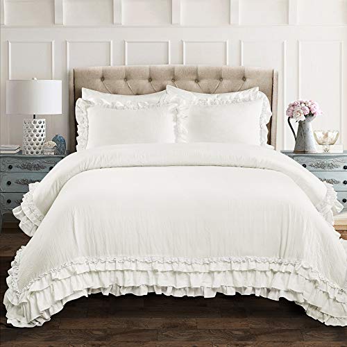 Lush Decor Avon – Parure de lit 3 pièces – Literie romantique de style rustique – Literie élégante à volants – Couette texturée douce – Décoration de chambre à coucher de campagne et de style rustique