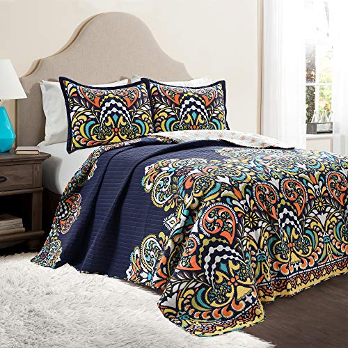 Lush Decor Parure de lit 3 pièces légère réversible à Motif Floral pour très Grand lit Bleu Marine