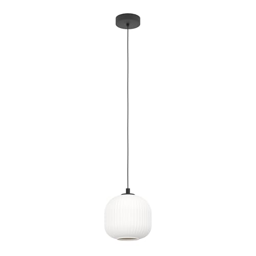 Eglo Suspension luminaire Mantunalle, lampe de plafond suspendue, lustre salon ou salle à manger en métal noir et verre blanc, douille E27, Ø 20 cm