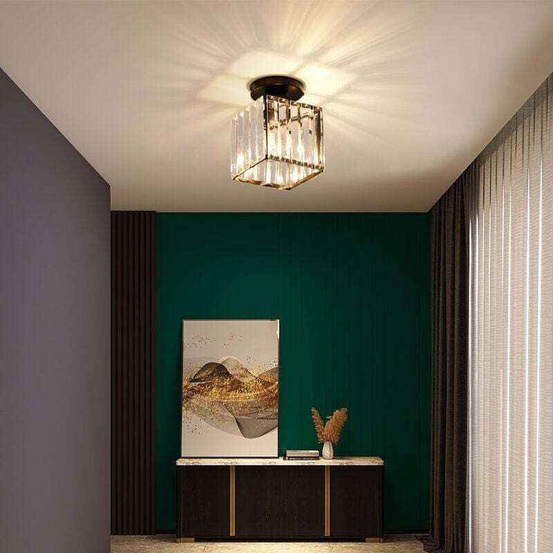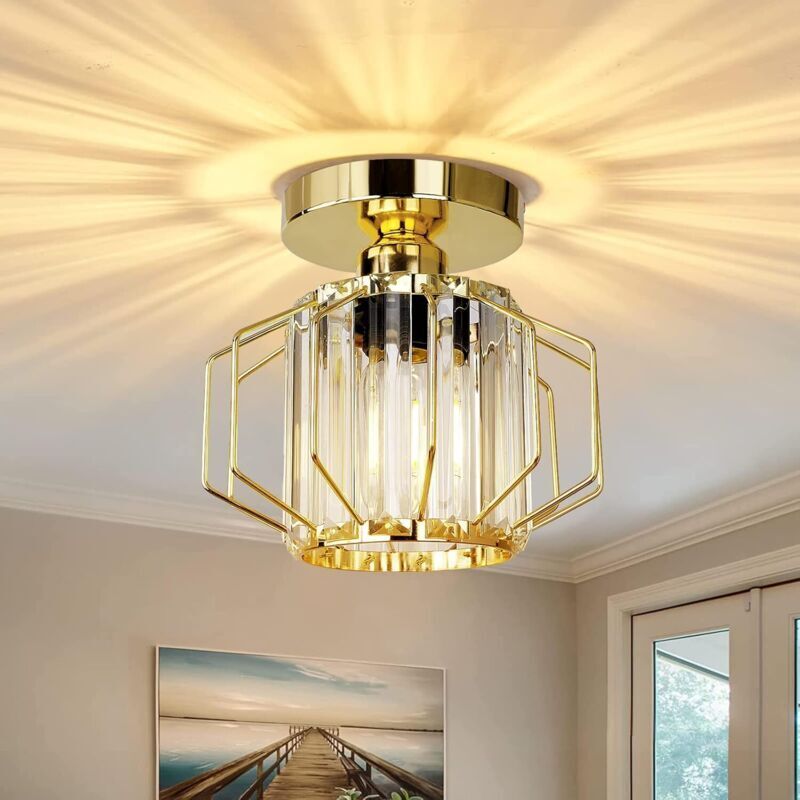 Plafonnier semi-encastré industriel doré à cristaux – Lustre LED moderne pour couloir et salon