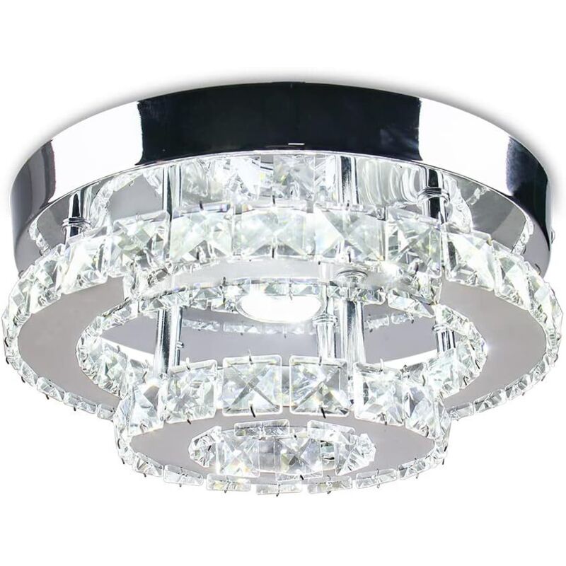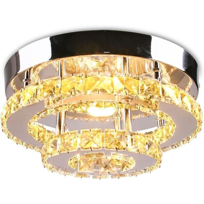 Lustre LED Cristal Plafonnier 2 Couches Encastré Plafonnier Moderne Lustre Éclairage pour Couloir Escalier Cuisine Salle De Bains (Blanc Chaud)