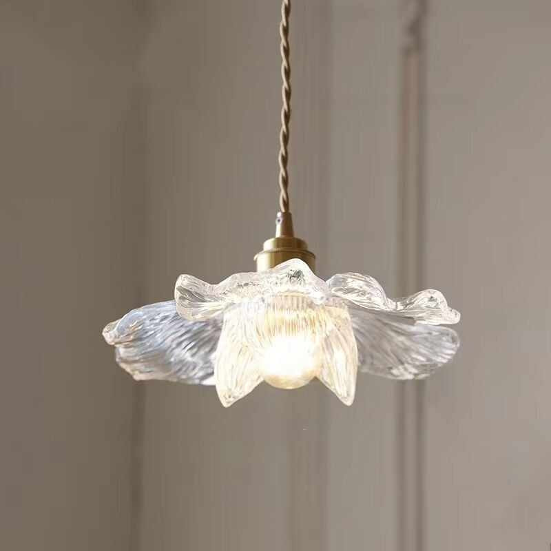 KXEcoLife Plafonnier en Verre à pétales de Fleurs pour Chambre, Rose Florale Transparente, Lampe encastrée pour Couloir, Lustre Moderne doré Antique du Milieu du siècle pour Salle à Manger o