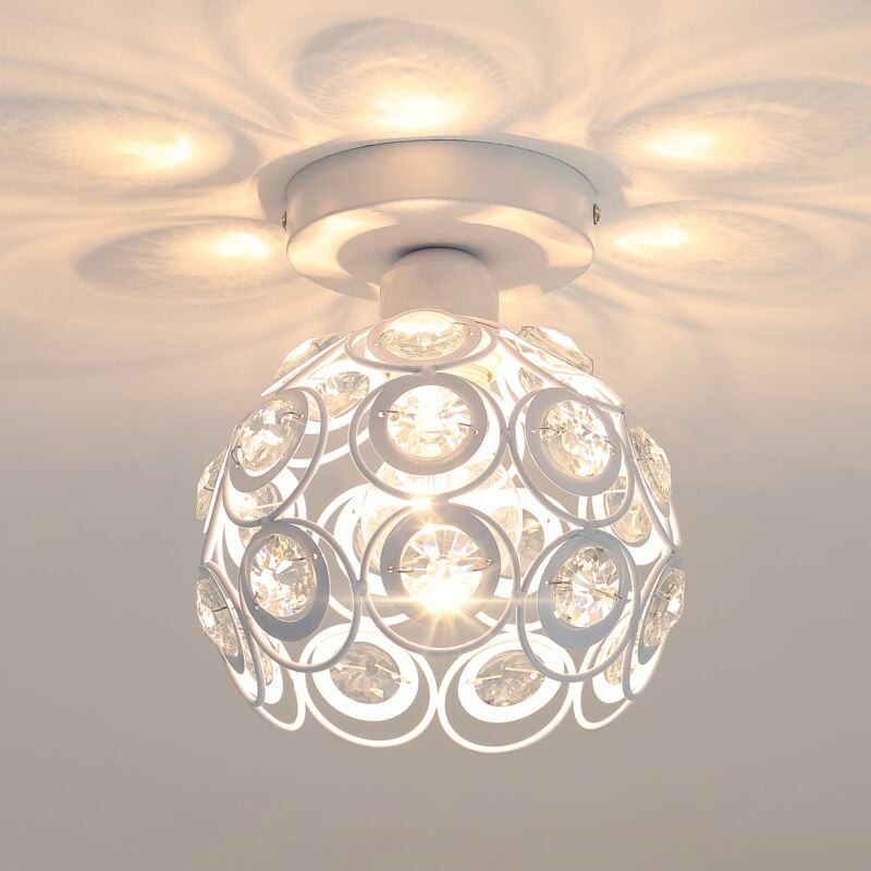 Mini Lustre en Cristal Plafonnier Moderne E27 Éclairage de Plafond Luminaire de Luxe Abat-jour pour Décor de Couloir de Salon (Blanc)