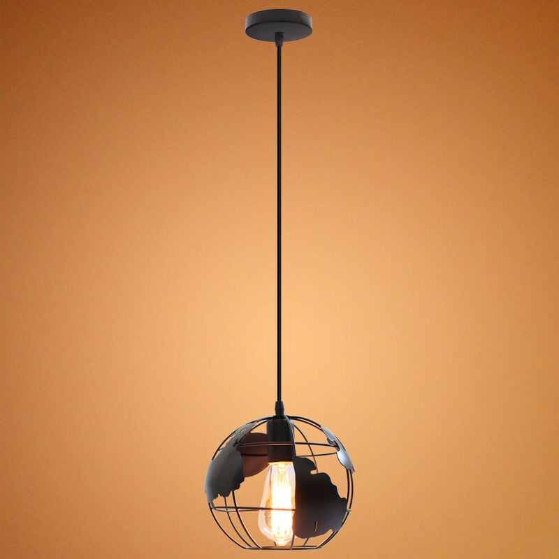 Lustre Suspension Moderne Suspensions Luminaires E27 Abat-jour Globe pour Salle à Manger Chambre Couloir Noir Ø20CM - 1Pcs