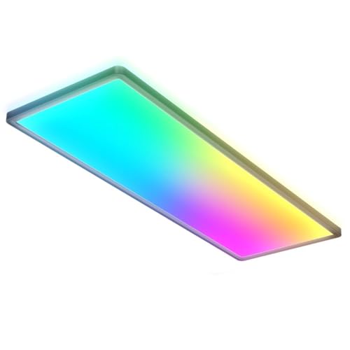 B.K.Licht - Panneau LED à lumière indirecte, télécommande, lumière colorée RGB+W, dalle led, panneau led plafond, plafonnier led, lustre salon et cuisine et chambre, 58x20x3 cm, noir