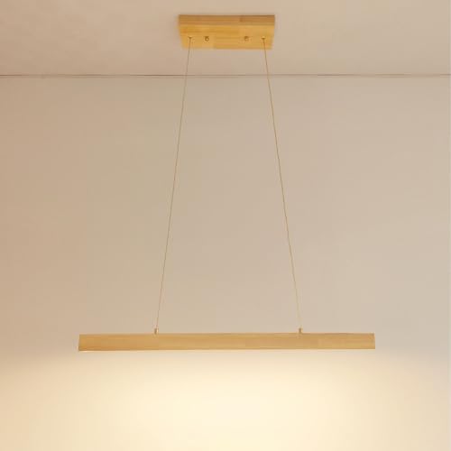 Jadssox Suspension linéaire en bois LED, lustre moderne pour îlot de cuisine, lampe suspendue minimaliste 3000K, éclairage pour salle à manger, table de billard, bureau et bar(100cm)