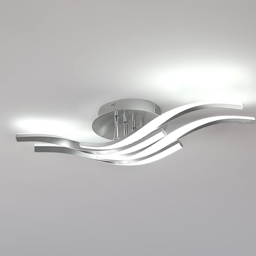 Toolight Plafonnier LED, 32W 3600LM Luminaire Plafonnier Moderne Design Ondulé, Lustre Intérieur Luminaire pour Salon Couloir Cuisine Chambre, Blanche Froide 6500K, Argent, 60CM